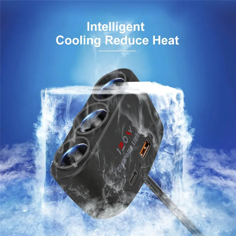 120W 3-in-1 Car Cigarette Lighter Splitter – Dual USB Fast Charger & Power Adapter